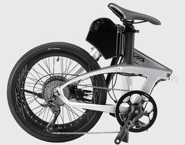 A lightweight carbon electric folding bike suitable for daily commuting or play.